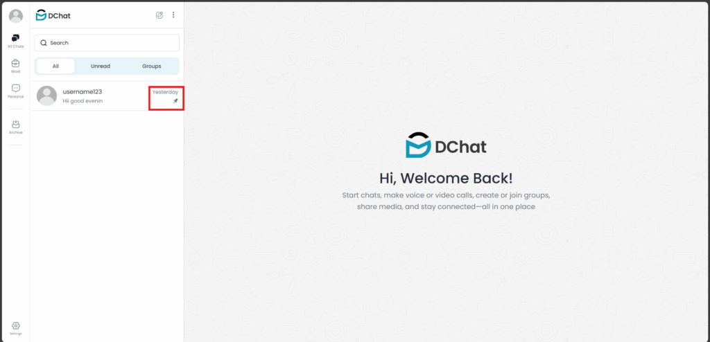 Step 3: – Click on “Pin chat” Tab, your chat will get pinned.