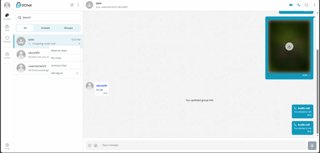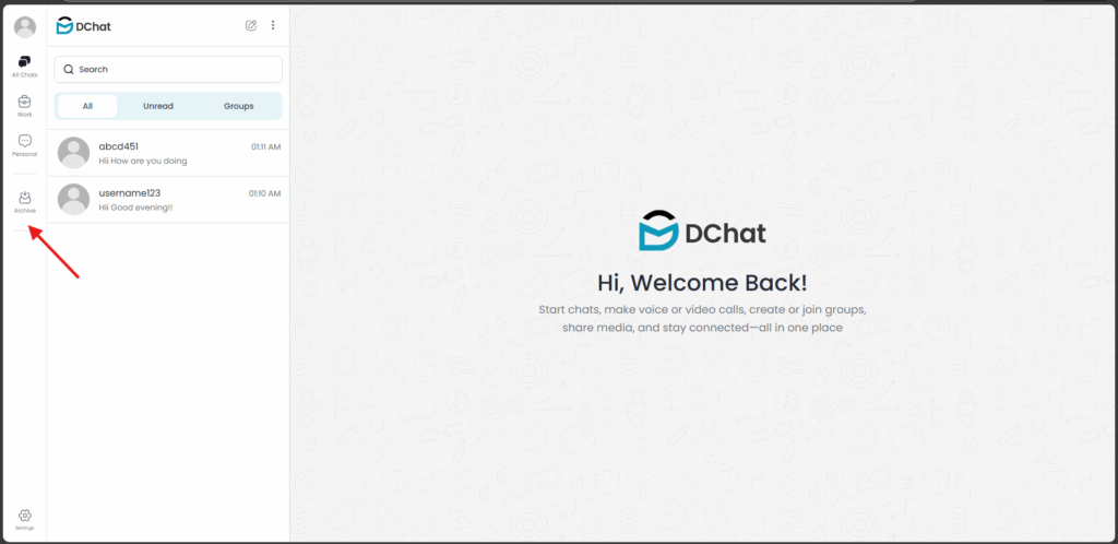 You can hide individual or group chat from DChat’s Chats tab by archiving it.