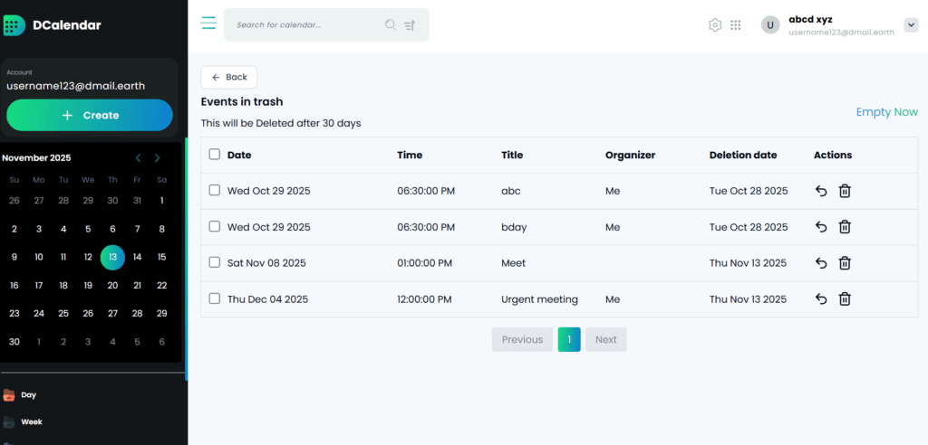 DCalendar lets you easily view the deleted event details, and you can also restore it if plans change.