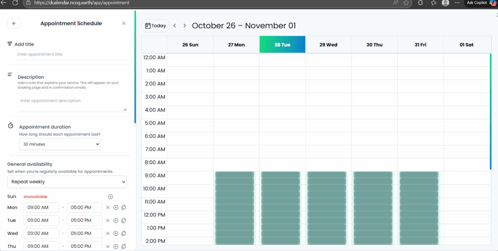 Scheduling Appointment on Dcalendar