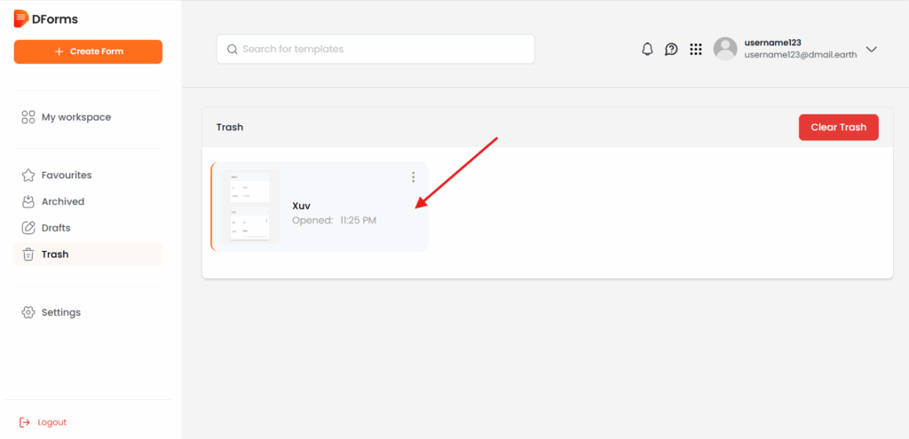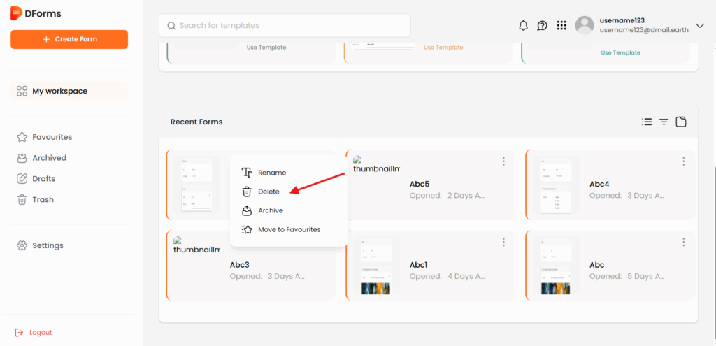 If you no longer need a form in DForm, you can easily move it to Trash. Follow the steps below to delete or trash a form safely.