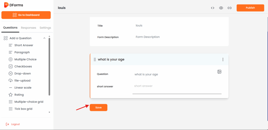 DForm allows you to save your form as a draft while you’re still working on it. This ensures you don’t lose progress and can continue editing later before publishing.