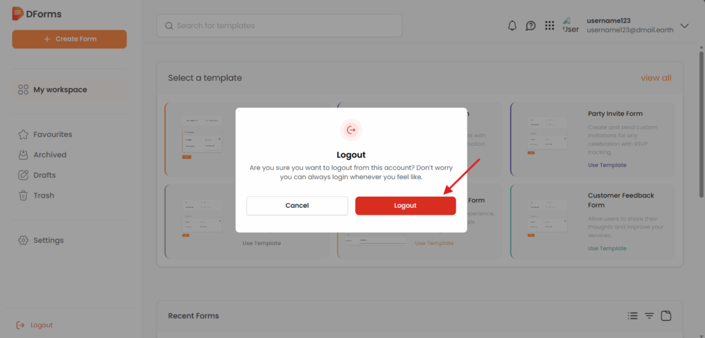 Step4: – If you are sure that you want to logout, click on the logout button and your account will get logout